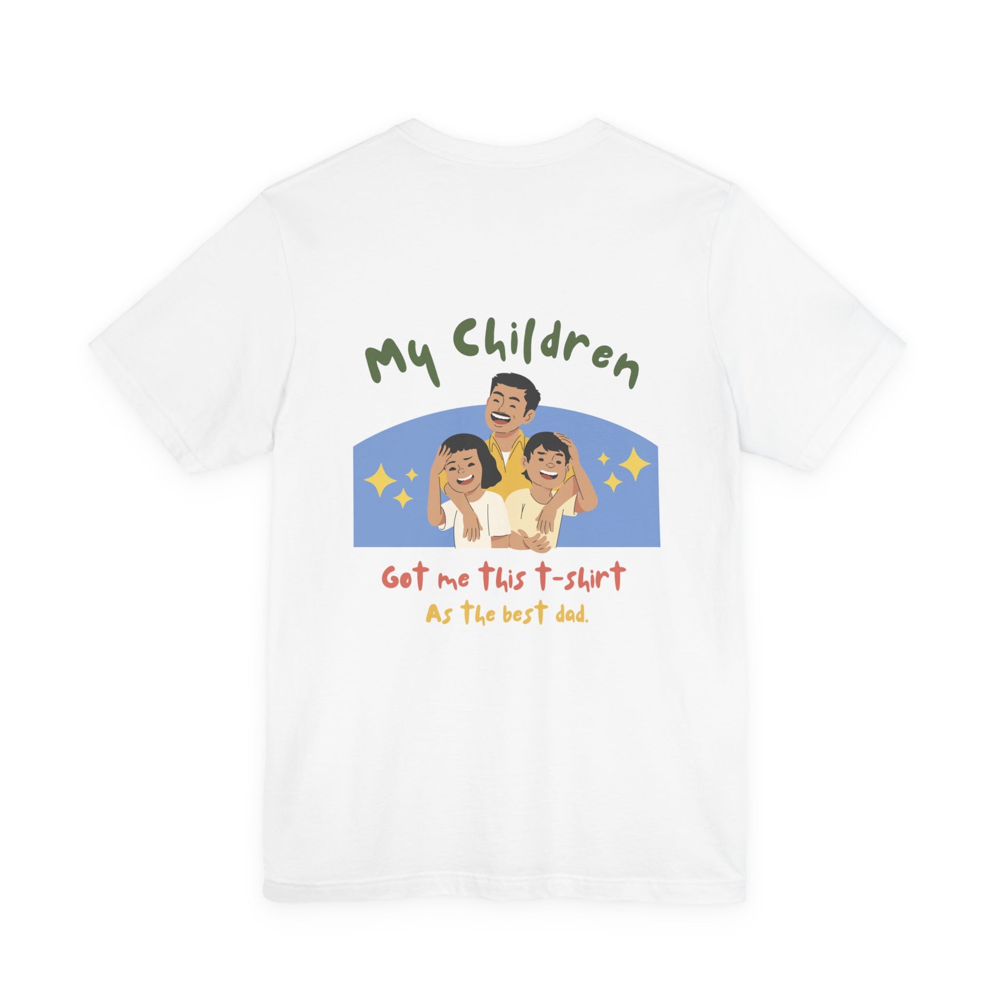 On the back, a charming, hand-drawn illustration of a happy family is paired with the loving message, "My Children Got me This T-Shirt As The best Dad," adding a deeply personal and touching touch. It’s more than just a shirt; it’s a wearable hug and a constant reminder of the love that surrounds him.