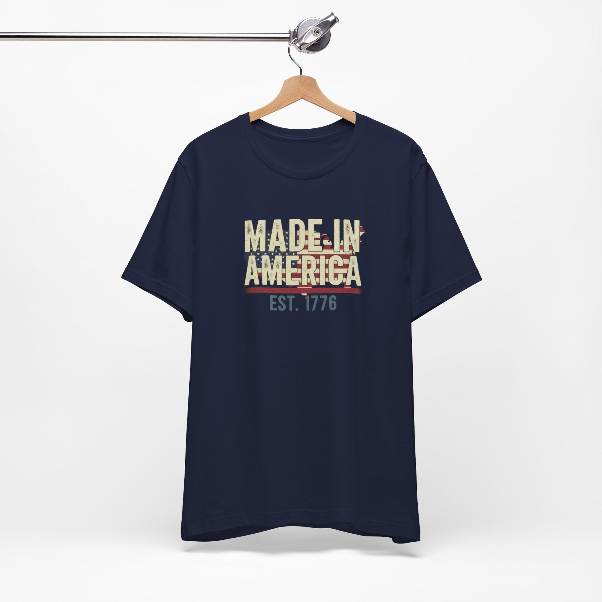 Celebrate the enduring spirit of a nation with our Heritage & Craft: "Made in America" Premium Tee. This design isn't just a shirt; it's a profound statement of pride, history, and unwavering American identity. Featuring the bold declaration "MADE IN AMERICA" with a subtly distressed, vintage-inspired flag graphic, and anchored by the iconic "EST. 1776," this piece pays homage to the very foundations of the United States.