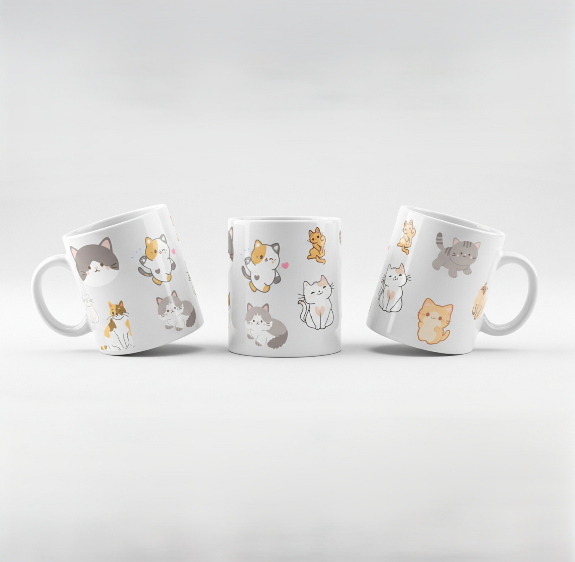 Fill your cup with charm with our Feline Friends Premium Mug. This mug is a loving tribute to every cat's unique personality, featuring a charming, all-over pattern of various whimsical cats. Each illustration captures a different mood, from playful and mischievous to sweet and cuddly, making it a delightful way to start your morning.